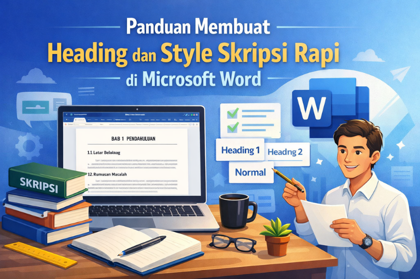Menyusun skripsi membutuhkan format yang rapi dan konsisten, terutama pada bagian judul bab dan subbab. Sayangnya, banyak mahasiswa masih mengatur format secara manual sehingga dokumen menjadi berantakan saat revisi. Padahal, Microsoft Word menyediakan fitur Heading dan Styles yang dapat membuat skripsi lebih rapi, konsisten, dan mudah diperbarui.