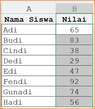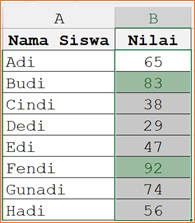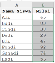Sorot dulu semua nilai dalam kolom nilai siswa, seperti gambar berikut :