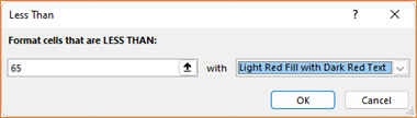 Pada kotak dialog yang muncul, ketikkan angka 65, dan pilih warna merah.