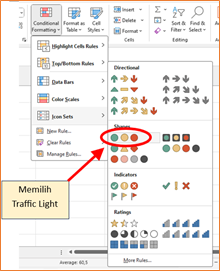 Lalu buka menu Home – Conditional Formatting – Icon Set – Traffic Lights