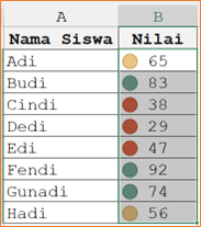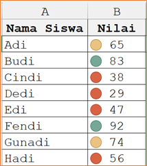 Akan tampil lingkaran merah, kuning, hijau pada kolom nilai , seperti berikut :