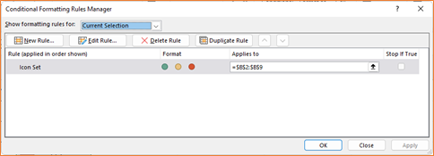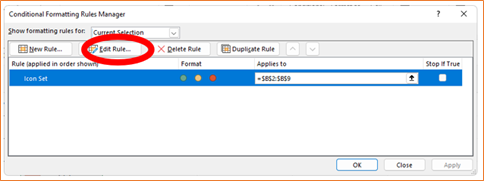 Klik pada Icon Set yang telah kita buat tadi, lalu pilih tombol Edit Rules