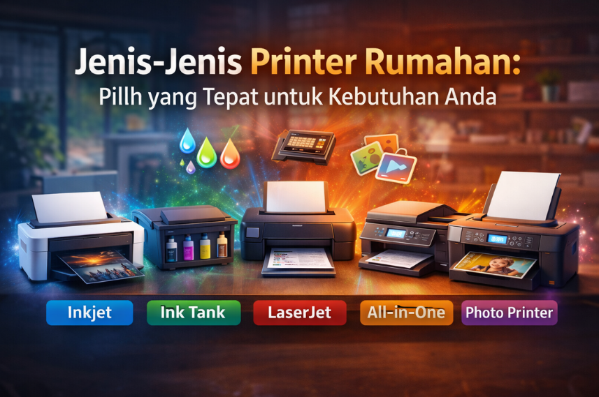 Memahami jenis-jenis printer rumahan membantu Anda memilih perangkat yang sesuai dengan kebutuhan dan budget. Inkjet cocok untuk pemakaian ringan dan foto, laser untuk dokumen cepat dan tajam, sementara printer tank menjadi solusi hemat untuk cetak volume tinggi.