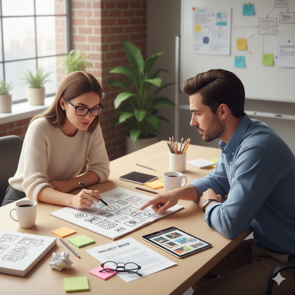 Di tahap ini, kunci sukses ada pada kemampuan mendengar aktif dan menggali informasi sedalam mungkin. Seorang desainer tidak hanya mendengar apa yang klien katakan, tapi juga menangkap “makna tersembunyi” dari apa yang sebenarnya mereka inginkan.